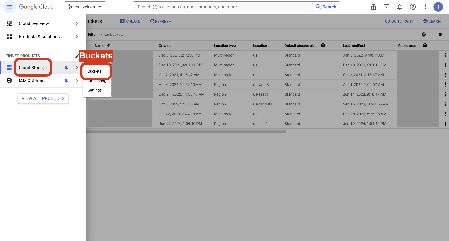 1. Navigate to Cloud Storage and Buckets.