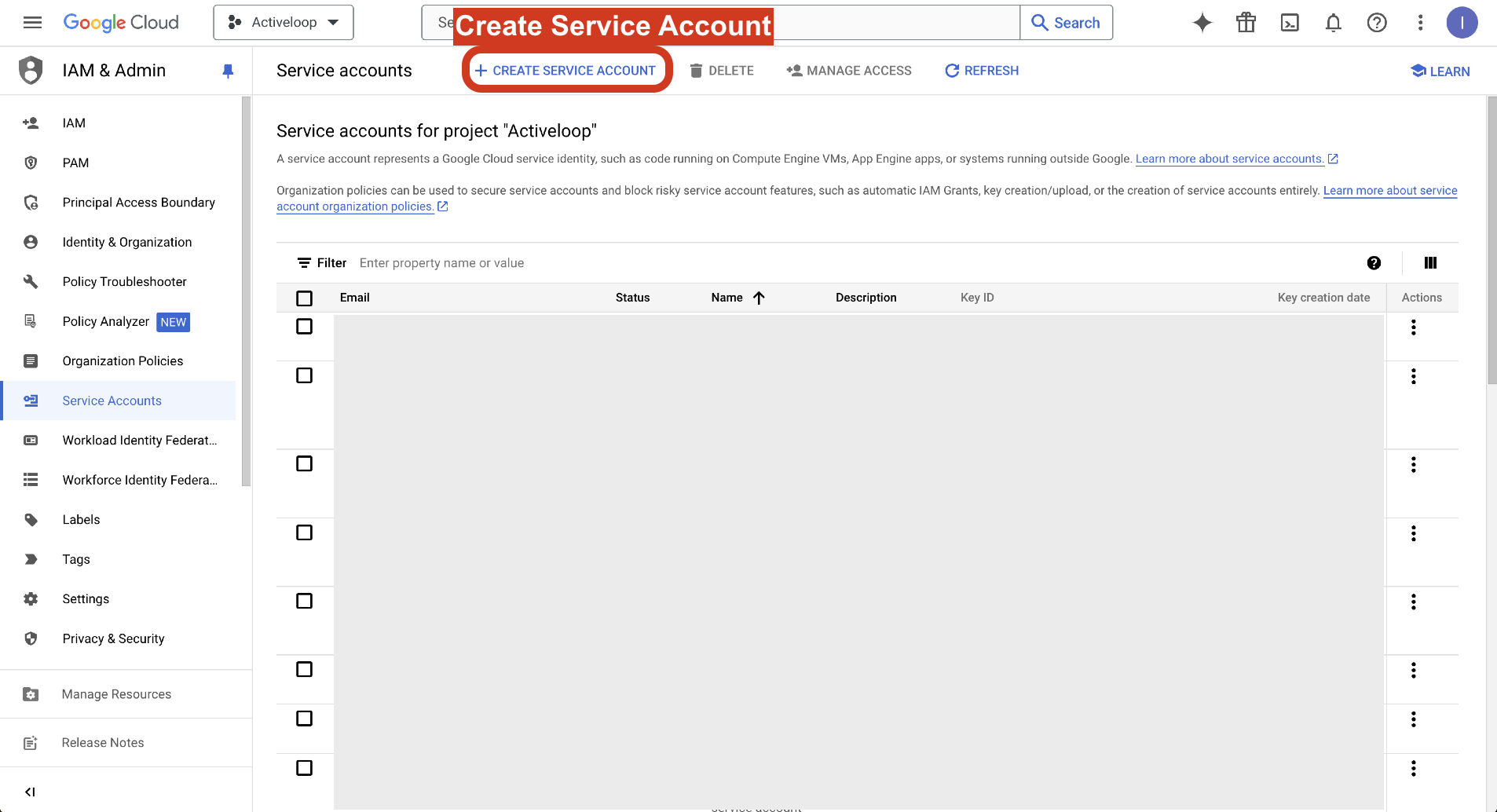 Step 1: Create Google Cloud Service Account