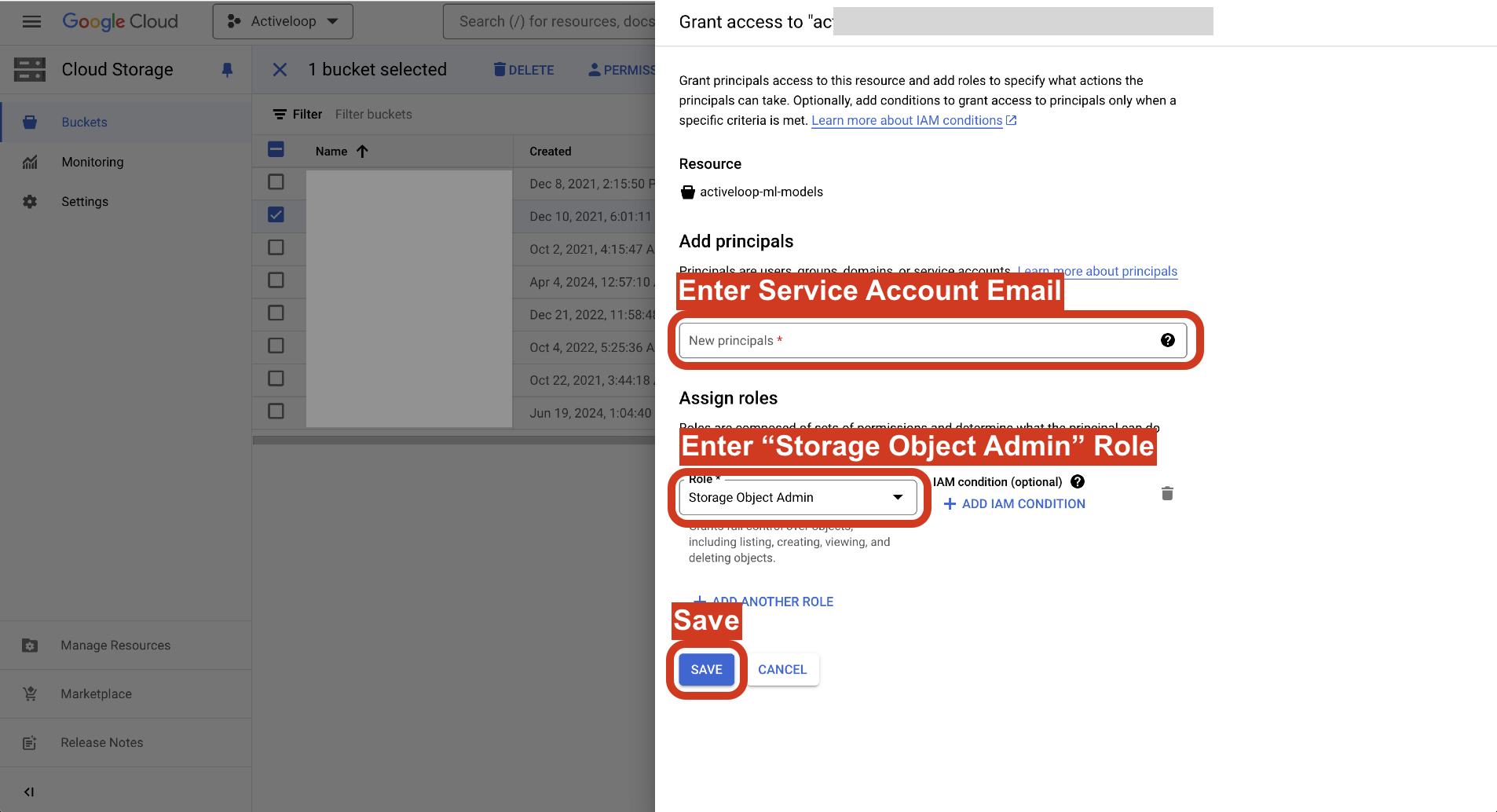 Step 2: Grant Access to the bucket using a Service Account Principal